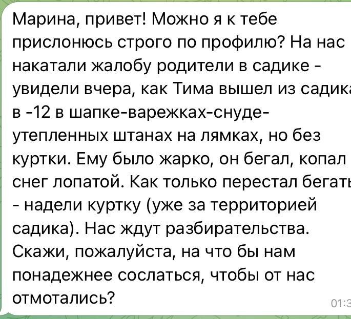 Решила поделиться им здесь для поддержки — боюсь, что такие истории не единичны. Пишет мне знакомая примерно неделю назад. Дело происходит в России, город-миллионник на Урале. Оставлю в стороне все эмоции от самого факта происходящего — поделюсь, чтобы я делала в такой ситуации. Первое, что пришло на ум — аппелировать к "своему" педиатру, который полностью поддерживает ваш подход и док мед. Пусть даже он где-то там онлайн и вы наблюдаетесь дистанционно. Или наблюдались раньше и читали его книги. Ну что-то такое в этом духе. Вторая важная вещь — быть уверенным в своих действиях (вы не делали ребенку ничего опасного, вы понимаете, как работает детская терморегуляция, от чего развиваются болезни и тд ) и последовательно доносить это до оппонента. Спокойно и уверенно. Что моя знакомая и делала. И по итогу у нее это получилось. Хотя стрессанула она я-даже-не-представляю-как.