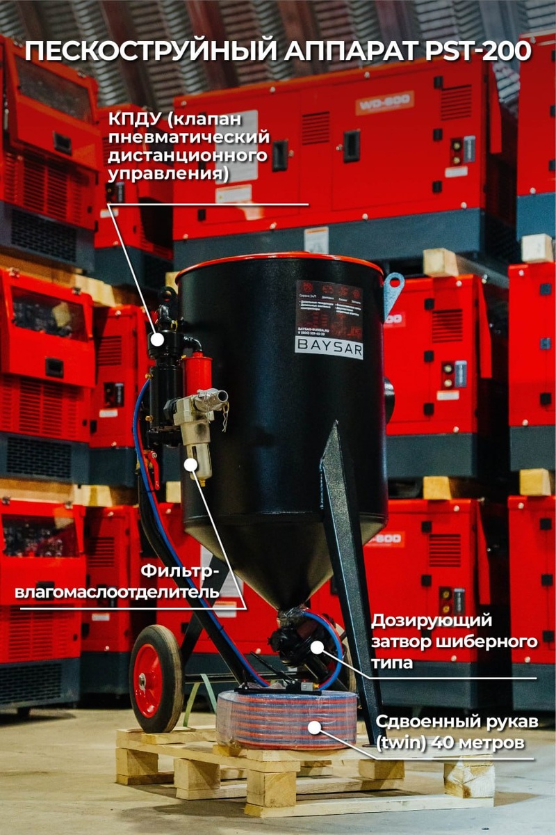 Собираем полные пескоструйные комплекты с компрессорами BAYSAR и абразивоструйными аппаратами PST-200. Сейчас в наличии есть идеальный компрессор для пескоструя BAYSAR SDPK750S на шасси с производительностью 21 м³/мин при давлением 12 бар - можно работать с аппаратами на высокой интенсивности без просадок по воздуху. Конфигурация с аппаратом PST-200 обеспечивает стабильную подачу воздуха, удобство управления и точную регулировку абразива. Оборудование в наличии. Формируем комплекты под задачи заказчика и готовим к оперативной отгрузке.