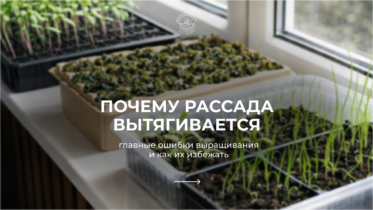 Многие садоводы сталкиваются с ситуацией, когда молодые сеянцы начинают активно тянуться вверх: стебли становятся длинными, тонкими и менее устойчивыми. Такая рассада хуже переносит пересадку, медленнее адаптируется в открытом грунте и может дать более слабый урожай. ❗ Чаще всего вытягивание рассады связано не с качеством семян, а с условиями выращивания. Даже небольшие отклонения в освещении, температуре или плотности посева могут повлиять на развитие молодых растений. Когда сеянцам не хватает света, воздуха или пространства для роста корневой системы, они начинают направлять силы на быстрый рост вверх, пытаясь получить больше света. При этом стебель развивается быстрее, чем корни, и растение становится менее крепким. Чтобы рассада формировалась компактной и сильной, важно учитывать несколько факторов: своевременные сроки посева, достаточное освещение, умеренный полив, правильный температурный режим и использование качественного рыхлого грунта. Все эти условия помогают корневой систем