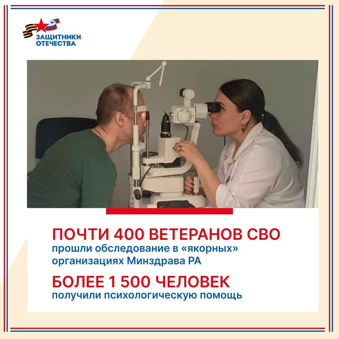 Уже почти 400 вернувшихся в регион ветеранов СВО прошли углубленную диспансеризацию в «якорных» организациях Адыгеи, где все осмотры и анализы для них организованы по принципу «отдельного коридора» без очередей. После диагностики им могут назначить лечение и медреабилитацию. При необходимости направляют в лучшие федеральные центры страны. Важную роль в реабилитации и лечении играет санаторно-курортное лечение — помощь в его получении уже оказана 155 ветеранам СВО и членам их семей. Отдельное внимание уделяется психологической поддержке. Поддержку получили уже более 1 500 человек. Соцкоординаторы также консультируют ветеранов по программам санаторно-курортного лечения и реабилитации и выезжают совместно с психологами к семьям погибших и пропавших без вести военнослужащих.