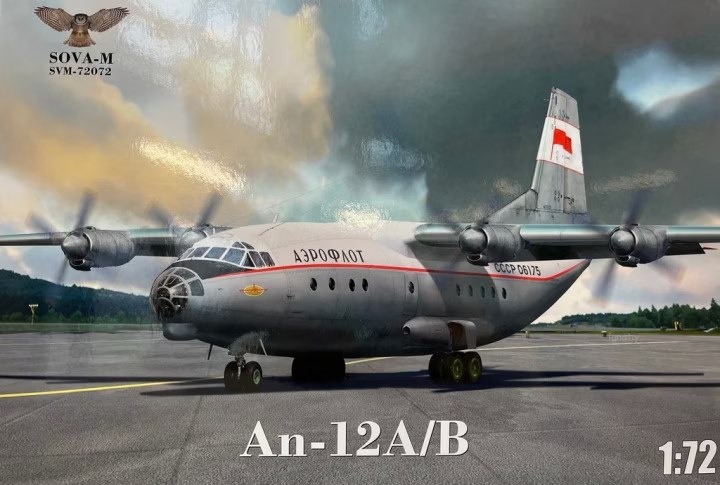SOVA-M из Киева перепаковывает с новой декалью модель Ан-12 в масштабе 1/72 разработки Roden 2002 года: