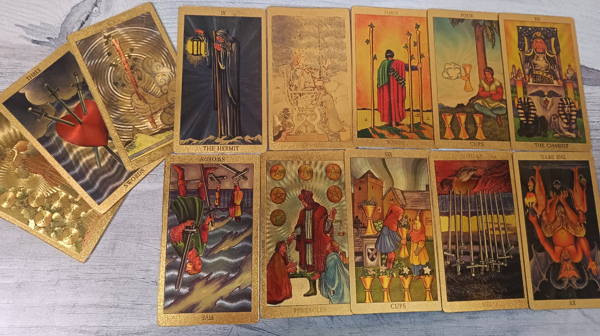 .... его внутренние демоны продолжают раздирать его, не находя внешнего выхода.... Дорогие дамы, приветствую вас. С вами Наталья, таролог, астролог, нумеролог с более чем 7-летним стажем, 24/7. Вот очередной раскладик внезапно прилетел из потока. Захотелось спросить: что у вашего бывшего женатого нарцисса сейчас происходит с женой? Слева карты сигнификации, чтобы вы узнали свою историю и поняли, читать ли вам расклад дальше. Итак, здесь Семерка Пентаклей, Тройка Мечей и Туз Жезлов. Ситуация такова: ваши отношения были длительными, но закончились разбитым сердцем. А мужчина успешно упорхнул в новые любовные приключения по Тузу Жезлов, о чем вы в последствии узнали, либо он вам с радостью сам об этом сообщил. Основной мотив отношений для него— это интим. Человек им интересуется, ему это нравится, и это самая основная движущая сила. Здесь жена выпадает Королевой Мечей рядом с Отшельником. То есть женщина, прекрасно понимая, в какой ситуации она находится, выбирает, как ей кажется, самое