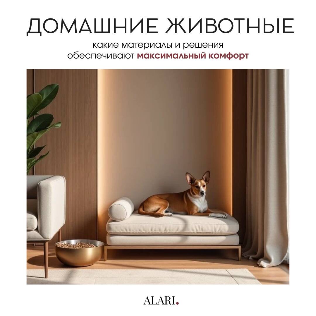 Если заранее продумать материалы и несколько бытовых деталей, дом может оставаться удобным и аккуратным. Что действительно помогает: ✅ Ткани - плотные и износостойкие Для диванов и стульев лучше выбирать ткани с плотным плетением. На них меньше затяжек и проще уход. ✅ Пол - устойчивый к воде и царапинам Лучше всего работают керамогранит, кварцвинил и качественные износостойкие покрытия. Они спокойно переносят влажную уборку, лапы после прогулки и мелкие царапины. ✅ Цвет Спокойные средние оттенки самые эффективные. ✅ Стены и низ мебели Если кошка проверяет углы, а собака любит прислоняться к стенам после прогулки — это не повод для грусти 🙃 Выручают моющиеся краски и прочные панели. ✅ Хранение - чтобы всё было на своём месте Корм, игрушки, поводки, лежанки и средства для ухода можно стильно разместить в отдельной зоне хранения. ✅ Место питомца - часть интерьера Лежанку, миски, когтеточку или клетку лучше продумать 😉😉😉😉😌🟤