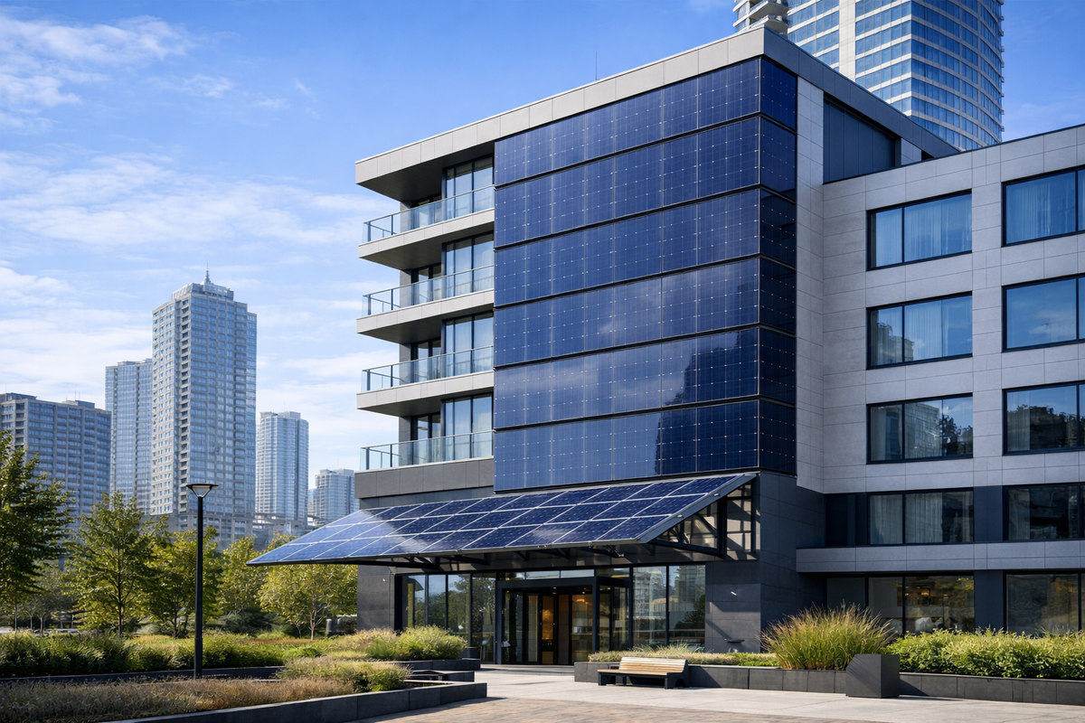 Там, где площадь кровли ограничена, а фасадов много, интегрированные решения выглядят логично. Особенно если часть генерации может закрывать общедомовые нагрузки: освещение общественных зон, паркингов, входных групп, инженерных помещений, элементов благоустройства.