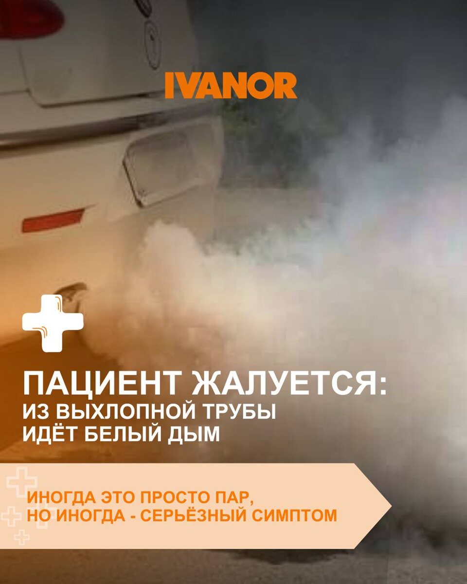 : «Из меня идёт белый дым…» Иногда это обычный пар при холодном запуске. Но если дым густой и не исчезает после прогрева, это может означать, что охлаждающая жидкость попадает в цилиндры двигателя. А это уже симптом, который лучше не игнорировать, чтобы избежать серьёзного ремонта двигателя. 🏥 В Автоклинике Иванор поставим точный диагноз вашему автомобилю и успешно вылечим вашего пациента! Замечали у себя белый дым из выхлопа после прогрева двигателя? 🚗