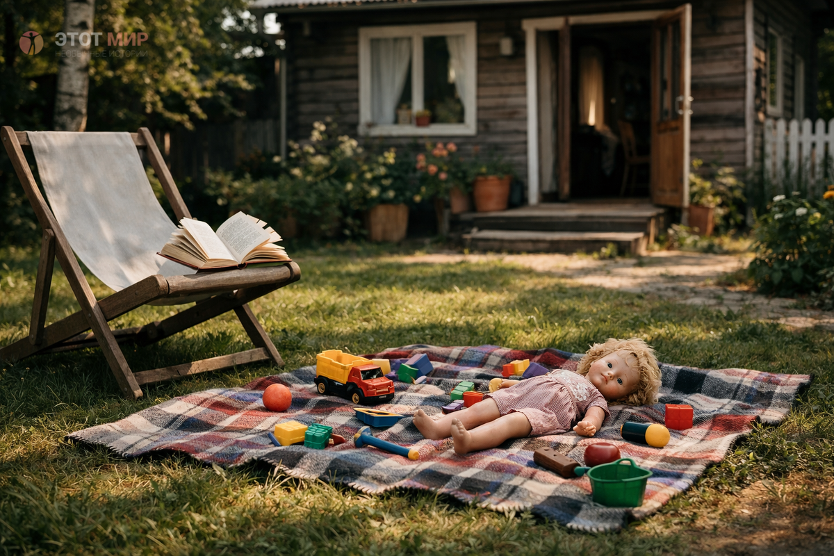 Светлана вошла в дом, оставив заднюю дверь приоткрытой. Пока она наливала сок и доставала из шкафа печенье, через открытое окно до неё доносился голос дочери, продолжавшей оживлённо разговаривать со своей куклой.
