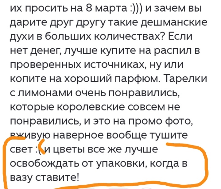 Дама написала, что мне лучше цветы освобождать от упаковки. А я ей написала, что мне в упаковке цветы нравятся.