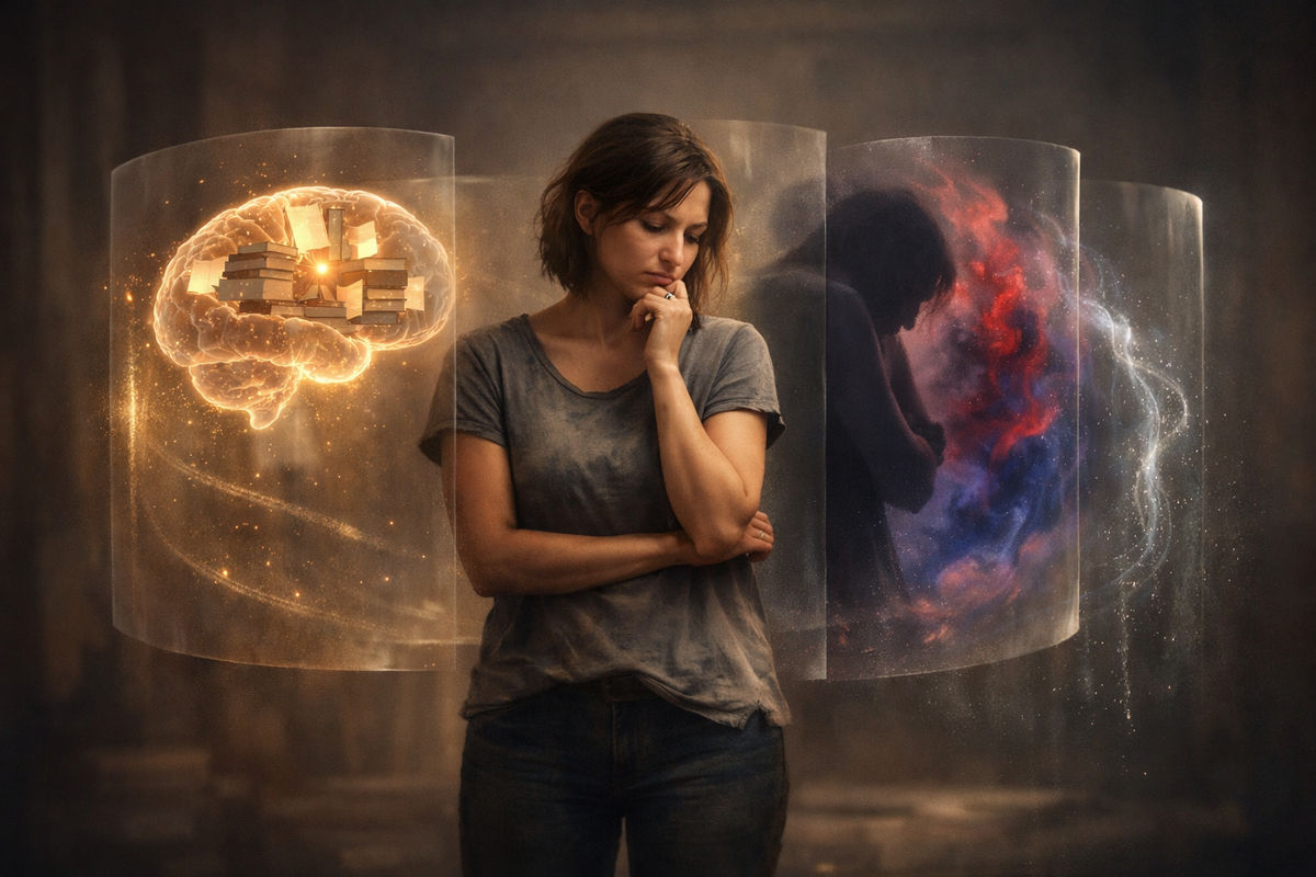 Объясню, почему так. Большинство методов работают с убеждениями, то есть с сознанием. Это один уровень из четырёх. А есть ещё тело, которое сжимается раньше, чем вы успеваете подумать. Эмоции — обида, вина, стыд, — которые тихо рулят вашим поведением. И энергия, которая утекает на удержание всего этого. Работаете с головой, а остальные три уровня нетронуты. Поэтому «понимаю,
