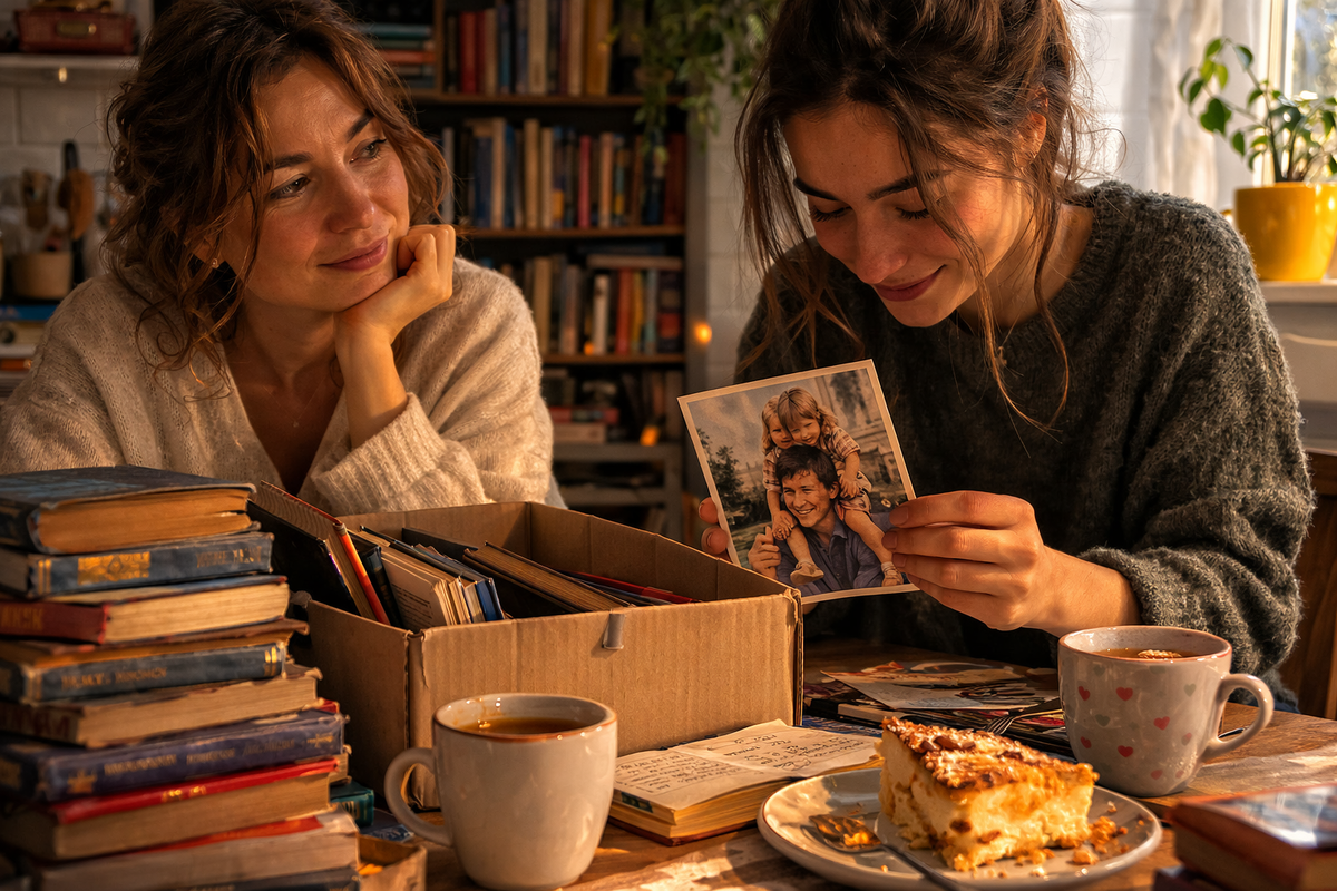 На третьей полке стало легче. На пятой уже появились смешные комментарии. На шестой мы обе чихнули от пыли и одновременно рассмеялись так, будто кто-то наконец открыл форточку.