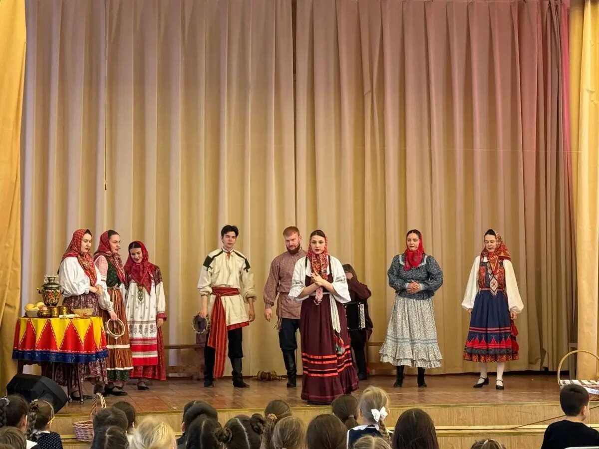" Проект «Театр в школе» продолжает дарить нашим ученикам незабываемые впечатления и ценные знания! Наши третьеклассники стали зрителями удивительного спектакля «Ой, Весна-красна», представленного талантливым фольклорным ансамблем «Россияне» Московским государственным академическим театром «Русская песня» под руководством Надежды Георгиевны Бабкиной. Ребята услышали весенние заклички, разучили игры, узнали о пословицах и поговорках, народных приметах, связанных с весной, и даже познакомились с традиционными народными инструментами. Взаимодействие с артистами, возможность услышать живое исполнение и увидеть аутентичные инструменты помогли ребятам глубже понять богатство русского фольклора. Особенно важно, что спектакль был построен с учётом возрастных особенностей детей, что позволило маленьким зрителям легко воспринимать и запоминать представленный материал, а еще пробудил в них интерес к народным традициям и культуре. Огромное спасибо фольклорному ансамблю «Россияне» за такое ошело