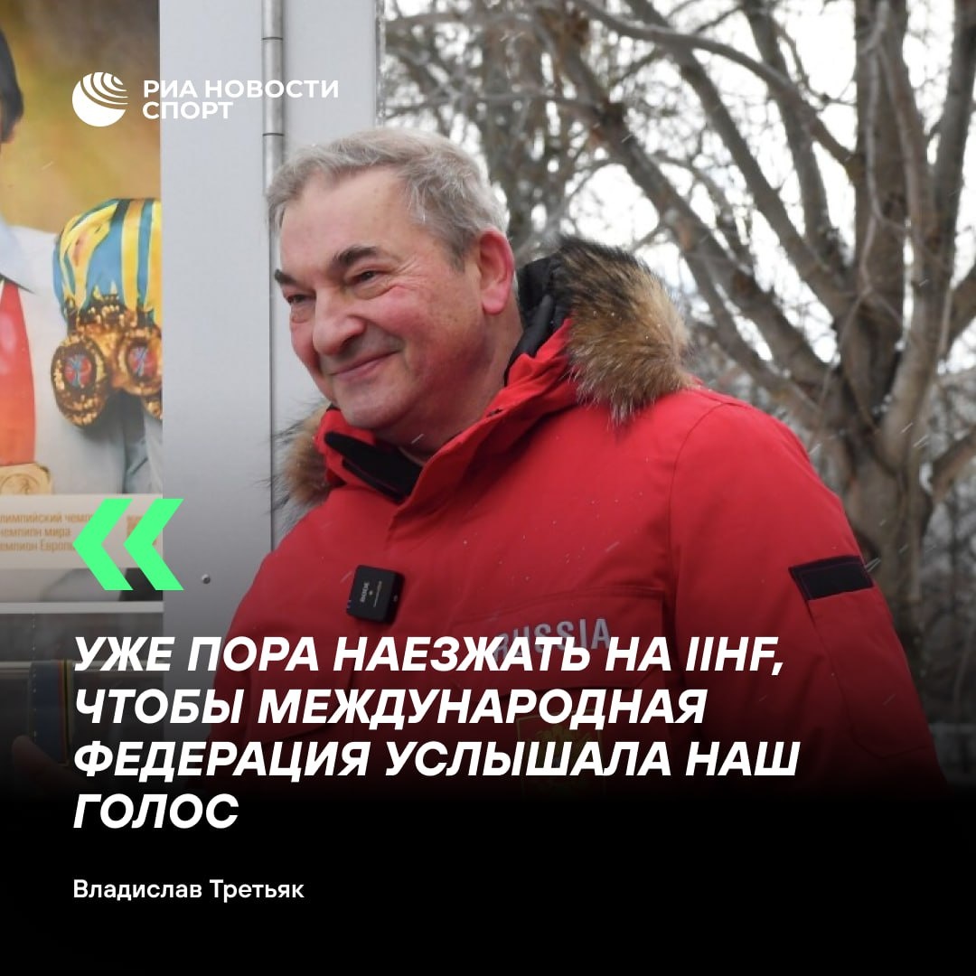 Привет, друзья! 🇷🇺 **Президент ФХР Владислав Третьяк заявил, что настало время действовать с позиции силы по отношению к IIHF** «Сейчас мы подаем документы в IIHF, чтобы нас включили в календарь международных соревнований. Если этого не случится, то обратимся в суд. Будем действовать с позиции силы, потому что уже пора наезжать на IIHF, чтобы международная федерация услышала наш голос. У них только одно слово — «безопасность». Безопасность, которую они не гарантируют. Поэтому они не приглашают нас на чемпионаты. Нам очень не нравится, что они даже не приглашают нас на конгрессы, поэтому мы выступаем в онлайн-формате», — заявил Третьяк журналистам. В четверг Третьяка в пятый раз (/63241) президентом Федерации хоккея России. (https://max.ru/sportrian)