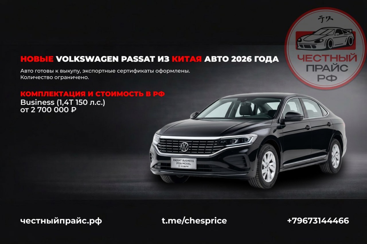Volkswagen Passat не нуждается в представлении. Это эталон эргономики, комфорта и статуса. Модель для китайского рынка отличается увеличенной колесной базой (пространства для задних пассажиров еще больше) и современным технологичным оснащением. Технические характеристики: 🔴Двигатель: 1.4 TSI (280 TSI) 🔴Мощность: 150 л.с. 🔴Трансмиссия: 7-ступенчатый робот DSG (с двойным сцеплением) 🔴Привод: Передний Комплектация Business: Экстерьер: Светодиодная оптика Full LED с датчиком света, хромированная отделка элементов кузова, легкосплавные диски R17. Интерьер и комфорт: — Кожаная обивка сидений с электрорегулировкой передних кресел. — Многофункциональное кожаное рулевое колесо. — Двухзонный климат-контроль Climatronic с сенсорным управлением. — Система бесключевого доступа (Keyless Access) и запуск двигателя кнопкой. Цифровые технологии: — Полностью цифровая приборная панель. — Информационно-развлекательная система с большим сенсорным экраном, Bluetooth и поддержкой смартфонов. — 8 дина