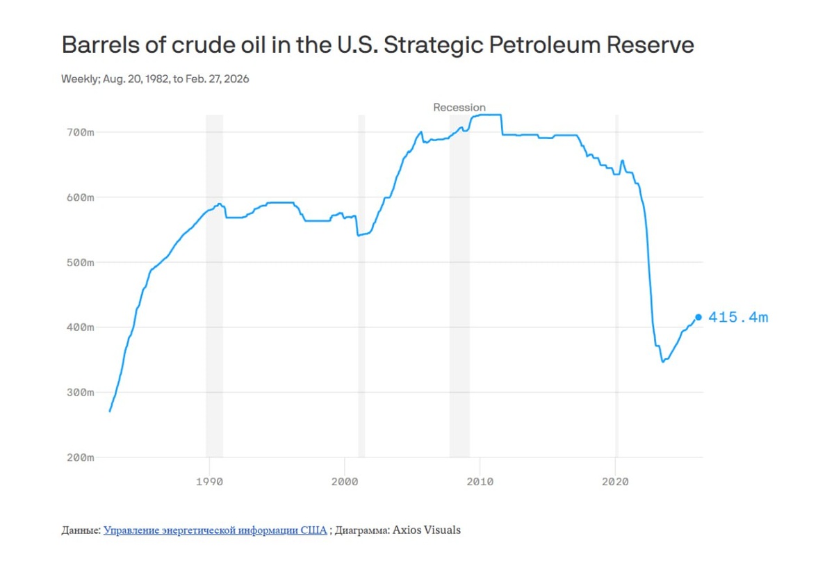 : NBC со ссылкой на два информированных источника сообщает: Трамп опасается, что рынки могут обернуться против него, и что высокие цены на бензин представляют для него политическую опасность. США обладают крупнейшими запасами нефти среди 32 стран, планирующих высвободить 400 млн баррелей нефти для борьбы с резким ростом цен. По данным JPMorgan Commodities Research, скоординированный сброс составит около 1,2 млн баррелей в день — примерно столько, сколько система способна обработать Хотя это может успокоить встревоженные рынки, этого будет недостаточно, чтобы компенсировать потенциальную потерю примерно 12 млн баррелей в день из-за длительного закрытия Ормузского пролива https://www.axios.com/2026/03/12/oil-prices-reserve-iran-war @marketheart
