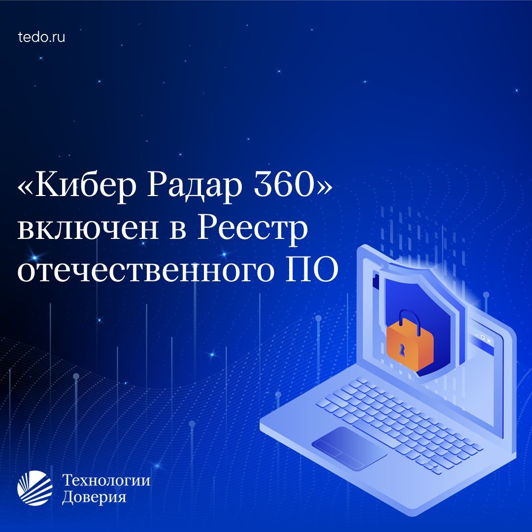 Решение компании ⚡️ТеДо по управлению киберрисками «Кибер Радар 360» включено в Реестр российского программного обеспечения