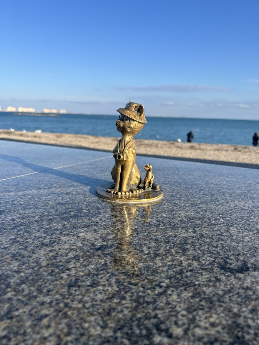 Кот фотограф - Жанровая скульптура в Евпатории на Набережной имени В. Терешковой #котфотограф #евпатория
