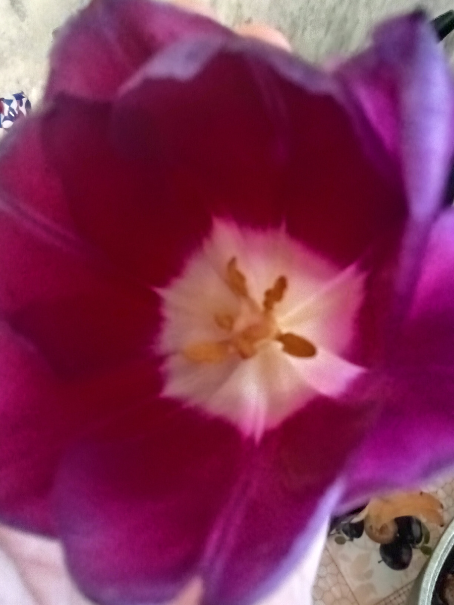 Смотрите какой красивый цвет у тюльпана. На 8 марта дочь подарила три, но выжил 1)))