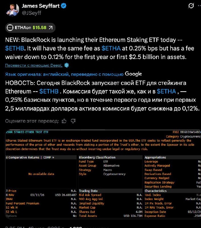 π₯ Π‘Π΅Π³ΠΎΠ΄Π½Ρ BlackRock Π·Π°ΠΏΡΡΠΊΠ°Π΅Ρ Π½ΠΎΠ²ΡΠΉ Ethereum ETF Ρ ΡΡΠ½ΠΊΡΠΈΠ΅ΠΉ ΡΡΠ΅ΠΉΠΊΠΈΠ½Π³Π°.