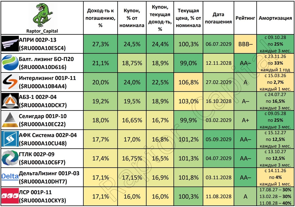 6) Без оферт и не СФО. 1️⃣ АПРИ 002Р-13 ($RU000A10E5C4) • Доходность к погашению: 27,3%