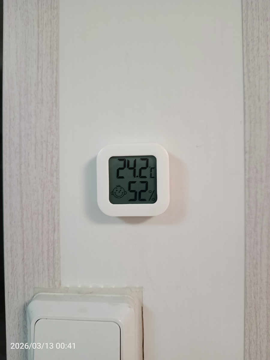 Но дом мы проветриваем по два- три раза в день. Высокая влажность. Недавно купила на ВБ гигрометр. Удобная маленькая штучка, и температуру в комнате показывает и влажность.