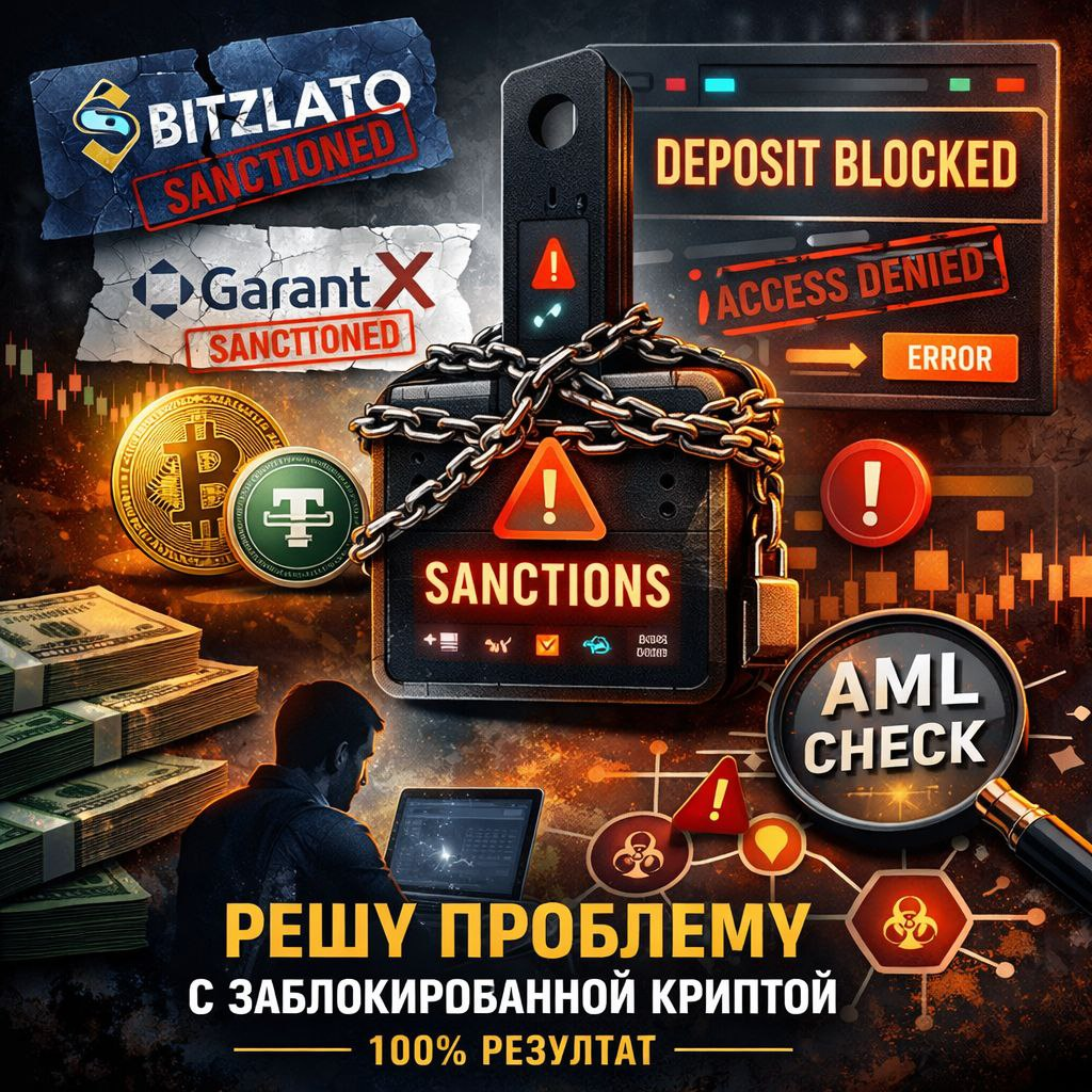 За последние две недели ко мне обратились уже три человека с одной и той же проблемой. Ситуация выглядит примерно так: Когда-то они купили криптоактивы на биржах вроде Bitzlato или GaranteX, после чего перевели монеты на холодные кошельки и спокойно держали их там. Прошло время. Эти биржи попали под санкции и фактически перестали работать. Когда люди решили вывести крипту в фиат, они отправили монеты на другую биржу — и тут возникла проблема. Биржа не пропускает средства. Причина — AML-риски. Кошелек помечен как связанный с санкционной площадкой. В результате: • депозит может зависнуть • биржа запрашивает объяснение происхождения средств • иногда средства блокируются на неопределённый срок После долгих часов анализа и тестирования разных вариантов мне удалось найти рабочее решение, которое уже дало 100% результат в этих трёх случаях. Если у вас: — монеты когда-то проходили через Bitzlato / GaranteX — биржа не принимает депозит — средства зависли из-за AML я могу помочь решить эту пробл