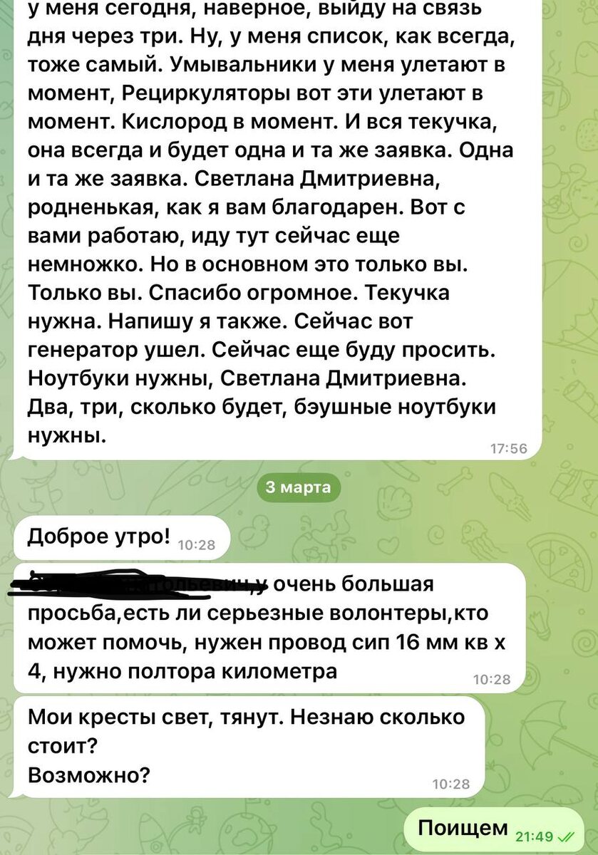 🛎️ На счету Фонда 59тысяч На карте 114 тыс. Будем снова пытаться сотворить чудо. Скарабей 1.Автономные отопители дизельные 10 шт 2.Шланг для газа 9мм сечение - 80 метров 3.Инфракрксные газовые гарелки (под природный газ)- 5 штук. ( уже 3 ✅ есть) 4.✅ Механизм рулевой с ГУР ГАЗель, Соболь Бизнес с 2020г.в. (ШНКФ453461.125) ГАЗ-1 шт ( Виктор🤝) 5.Матрас электрический с подогревом 75х145 см-4шт 6.Электроодеяло с подогревом электрическое Cale 120х150 см-4шт , ( уже ✅2 шт есть) 7. Влажные полотенца XXL-50 шт (по возможности) 9. Пелёнки одноразовые 60*90-50 уп(по возможности) Сосудистый хирург АВ - кожный степлер 30 - удалитель скоб 5 - циркулярный сшивающий аппарат 29-3 - циркулярный сшивающий аппарат 32-3 - циркулярный сшивающий аппарат 32-3 - циркулярный сшивающий аппарат 26-1 - циркулярный сшивающий аппарат 34-1 - циркулярный сшивающий аппарат для геморроидопексии 32-5 -- циркулярный сшивающий аппарат для геморроидопексии 32-5 -- циркулярный сшивающий аппарат для геморроидопексии