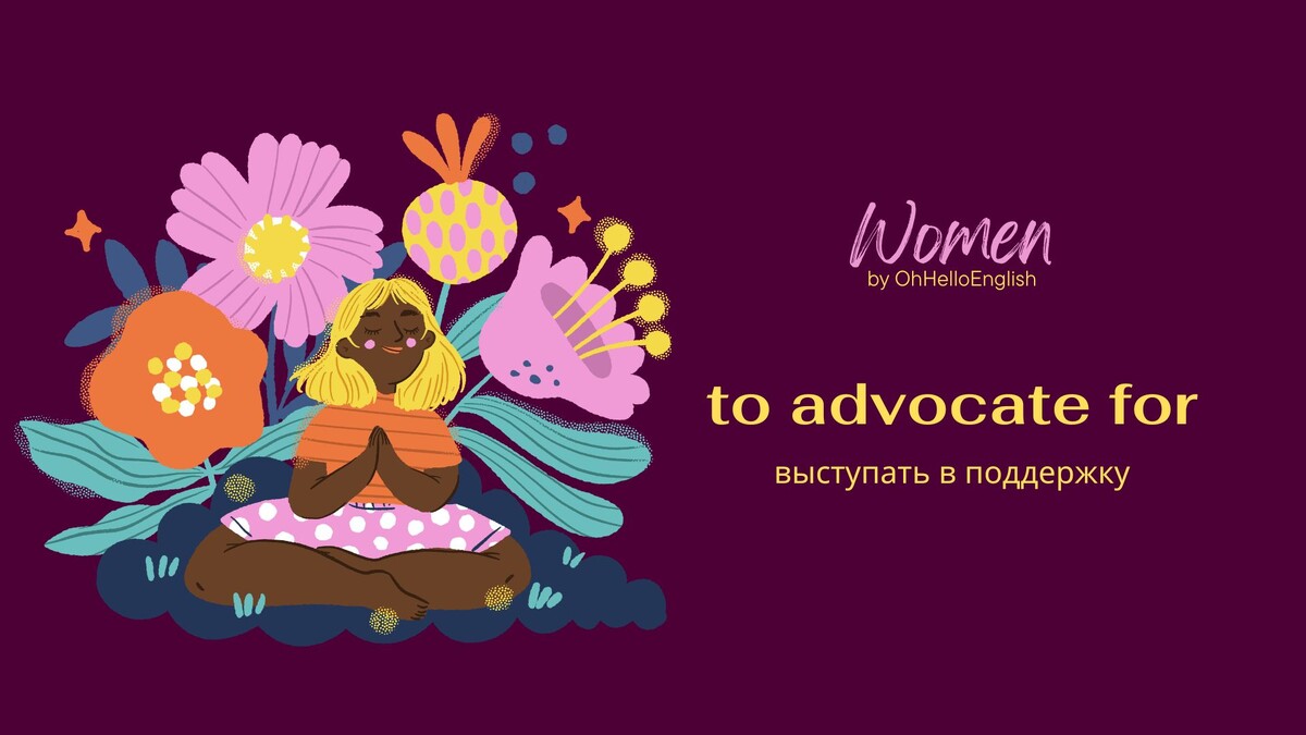 to advocate for - выступать в поддержку На этой неделе мы собрали для вас ёмкий словарный запас на тему Women. В нем вы найдете много полезных слов и выражений о роли женщин в обществе, образовании, карьере, а также о правах и личном развитии 🥰 Скачать словарный запас можно здесь 👉🏻 Telegram канал OhHelloEnglish Также в нашем канале: ежедневные публикации, советы для речи и понимания на слух, интерактивы и запись на разговорные клубы. Начните практиковаться уже сегодня: - оставляйте свои ответы с новым словом to advocate for в комментариях👇🏻