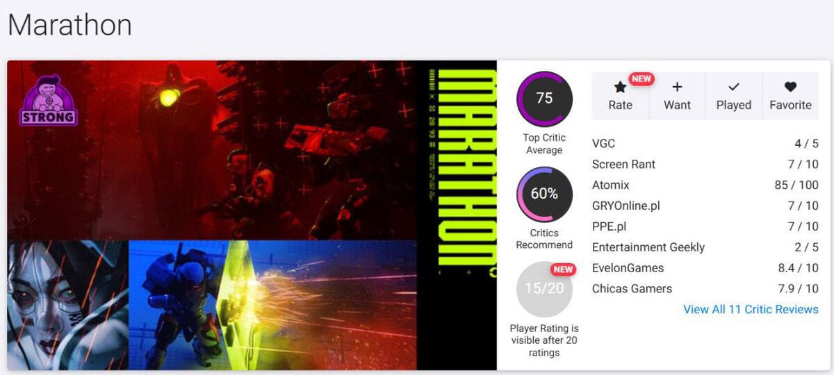 Marathon получила первые оценки критиков – 75/100 на OpenCritic