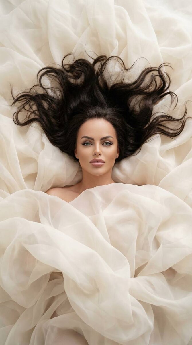 Девушка в облаках ткани, нежная фотосессия