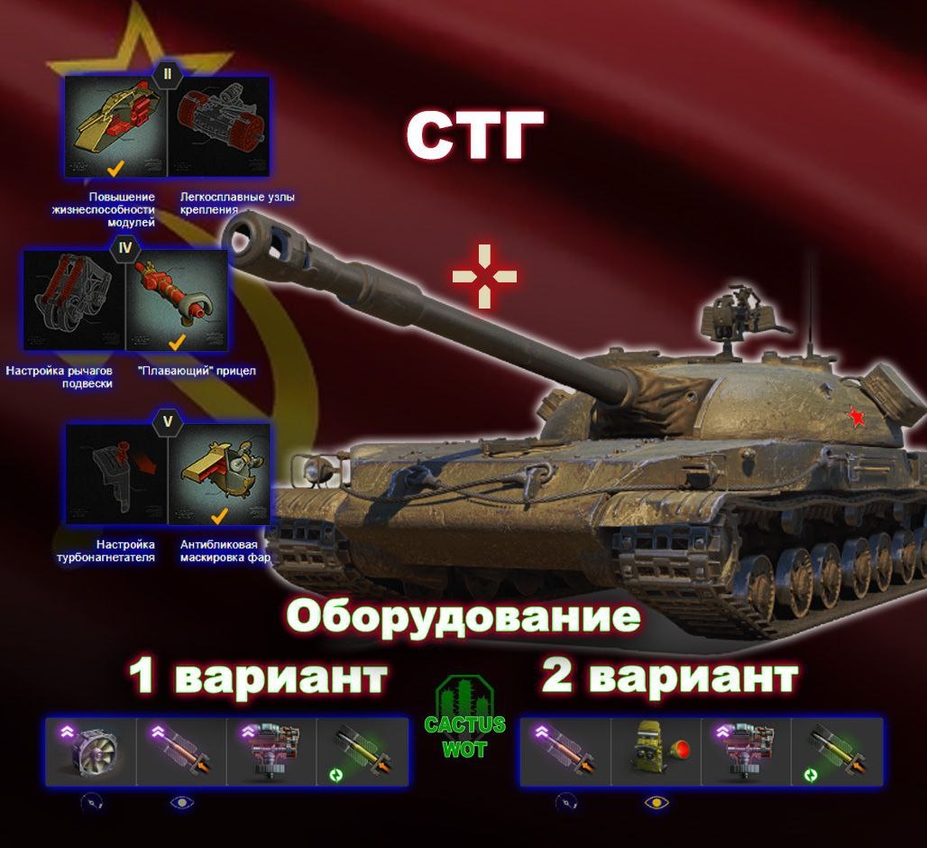 🏥 Средний танк снайперский 8 уровень. СССР. 🔼Полевая модернизация на картинке🔼 ТТХ: Калибр (мм)122 Урон (ед.)390 / 390 / 530 Бронепробиваемость (мм)212 / 248 / 61 Скорострельность орудия (выстр/мин)4.62 Заряжание орудия (с)13 Скорость гориз. перевода прицела (град/с)35 Углы вертикальной наводки (град)-6 / 17 Время сведения (с)2.50 Разброс на 100 м (м)0.33 Средний урон в минуту (ед/мин)1800 Боекомплект (шт.)35 Живучесть 267 Прочность (ед.)1350 Бронирование корпуса (лоб/борт/корма в мм)100 / 45 / 45 Бронирование башни (лоб/борт/корма в мм)210 / 180 / 45 Время ремонта ходовой (с)10.03 Мобильность 573 Масса (кг)28000 Мощность двигателя (л.с.)450 Удельная мощность (л.с./т)11.82 Макс. скорость / задний ход (км/ч)50 / 20 Скорость поворота шасси (град/с)45 Незаметность 298 Неподвижной машины (%)0.30 В движении (%)0.23 Наблюдение 526 Обзор (м)370 Дальность связи (м)730 ➕Плюсы: Разовый урон Бронепробитие базовым снарядом Бронирование башни Точность ➖Минусы: Мощность двигателя Радиус обзор