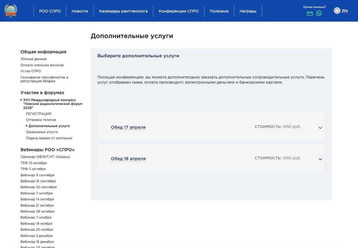 🤩🤩🤩🤩🤩 🤩 🥗 Для вашего комфорта на Невском Радиологическом Форуме -2026 Вы можете приобрести комплексный обед (шведский стол в ресторане гостиницы) в разделе "Дополнительные услуги" личного кабинета РОО «СПРО». https://www.spbra.ru/lk/konferencii/nrf-2026/dopolnitelnye-uslugi.html Время обеда 12:15-15:00. ВАЖНО: забронировать обед необходимо до 7 АПРЕЛЯ так как закупка свежих продуктов гостиницей производится заранее под мероприятие. Стоимость 1 комплексного обеда – 1450 р. ❗️Обед за каждый день конгресса приобретается отдельно. В дни конгресса приобрести комплектный обед не получится. Поэтому предлагаем воспользоваться этой возможностью заранее. ❇️ Наш канал в MAX: https://max.ru/join/2trwrU5ED84g09D0Ucae9BkydZpcllAzYR8BPnud0sc