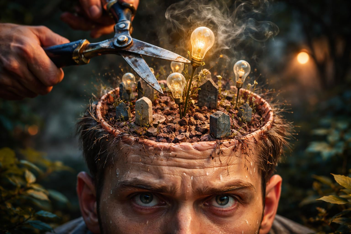 Твой мозг - это кладбище нерождённых идей, и большинство из них ты прикончил собственными руками прежде, чем они успели сделать хотя бы один вдох. Мы привыкли называть это осторожностью или здравым смыслом, но на деле это обычное убийство в зародыше. Каждый раз, когда в голове вспыхивает искра, мы инстинктивно тянемся за садовыми ножницами, чтобы подровнять этот «дикий» росток под стандарты приличия.