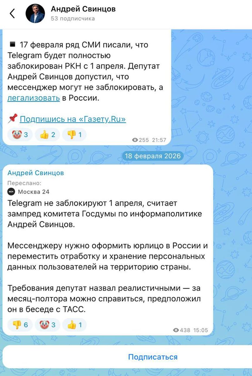 Парадокс: депутат, говорящий о блокировке Telegram, почти месяц не ведёт свой канал в MAX