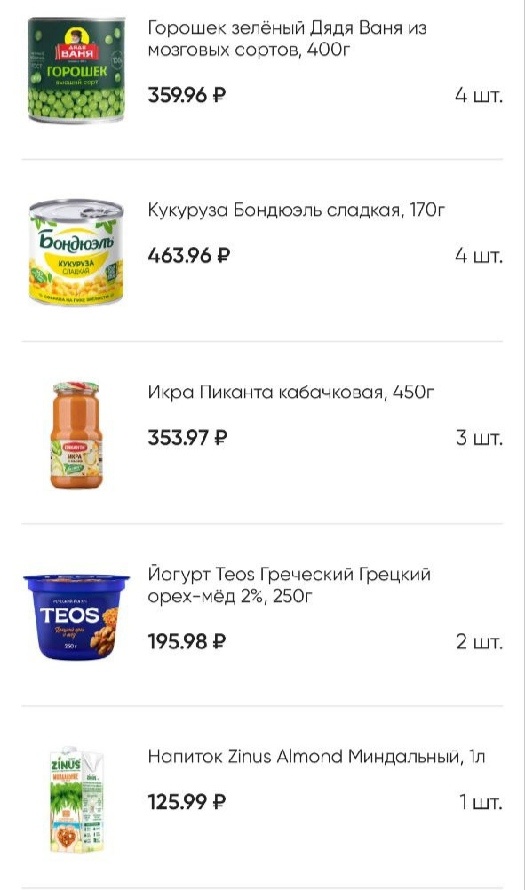 Дополнила свои запасы консервированными овощами. Мужу пришли два промокода на доставку, заказала овощи, молоко и хлеб.