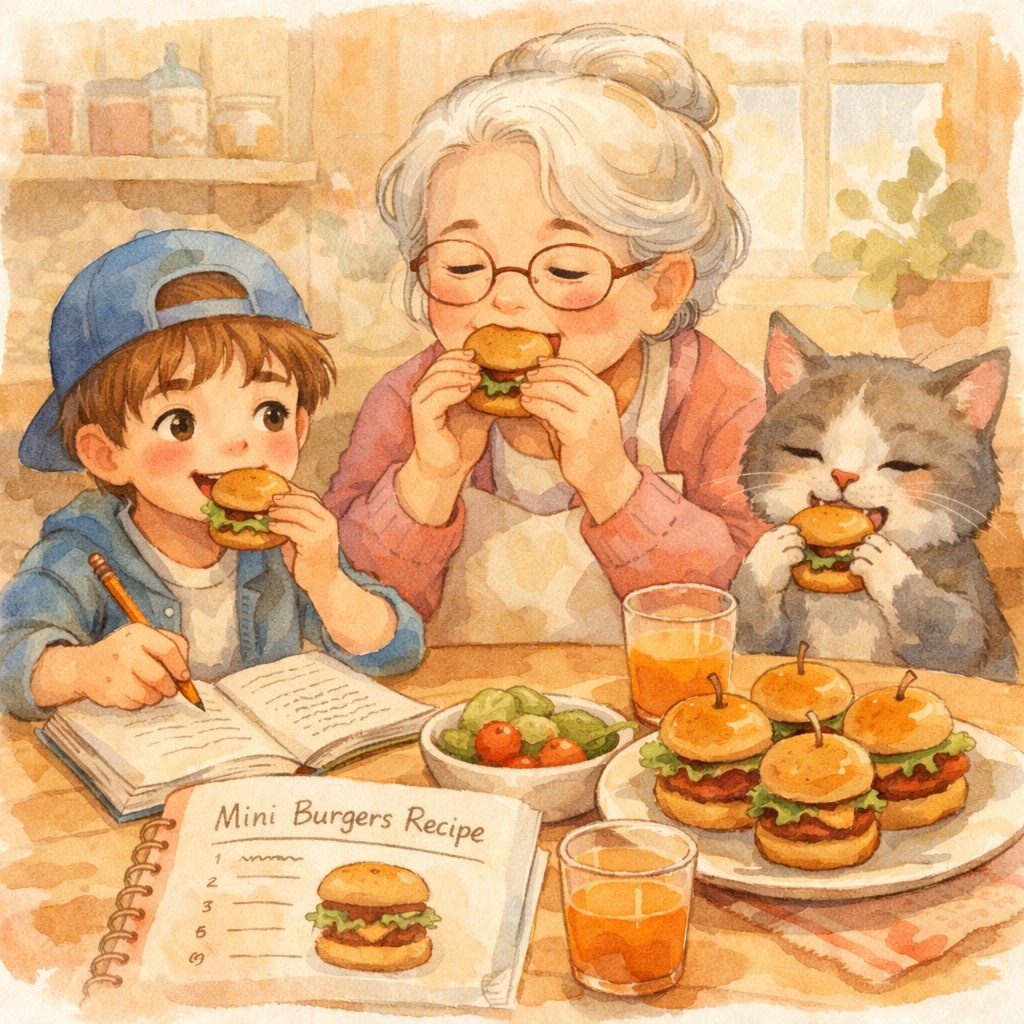 С тех пор каждый раз, когда у Гоши недоставало продуктов или оставались продукты, которые не съели по каким-либо причинам, он всегда вспоминал об этих волшебных мини-бургерах, приготовленных с бабушкой и Палёнкой. И каждый раз они вместе готовили эту вкуснятину, радуясь каждому моменту, проведённому вместе.