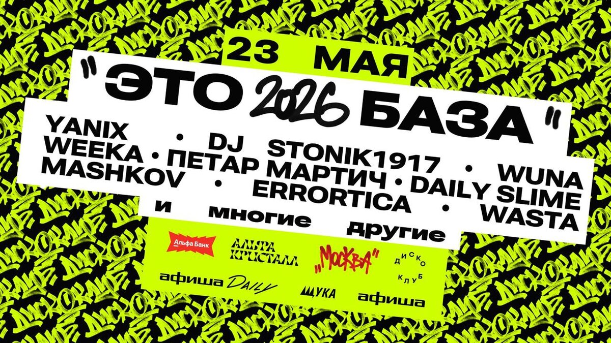 🎤 – Yanix, DJ Stonik1917, Петар Мартич, WUNA, Weeka и др. 📍– ДК «Альфа Кристалл», Москва, Самокатная ул. д. 4 стр. 11 🗓 – 23 мая 💵 – от 2 000 руб. 🔗 – билеты (18+) #концерты #билетынаконцерт #фестиваль #этобаза2026 #yanix #djstonik1917 #петармартич #wuna #weeka #дкальфакристалл #дискоклуб #москва 👉 Список концертов: март • апрель • май @est_prohodka