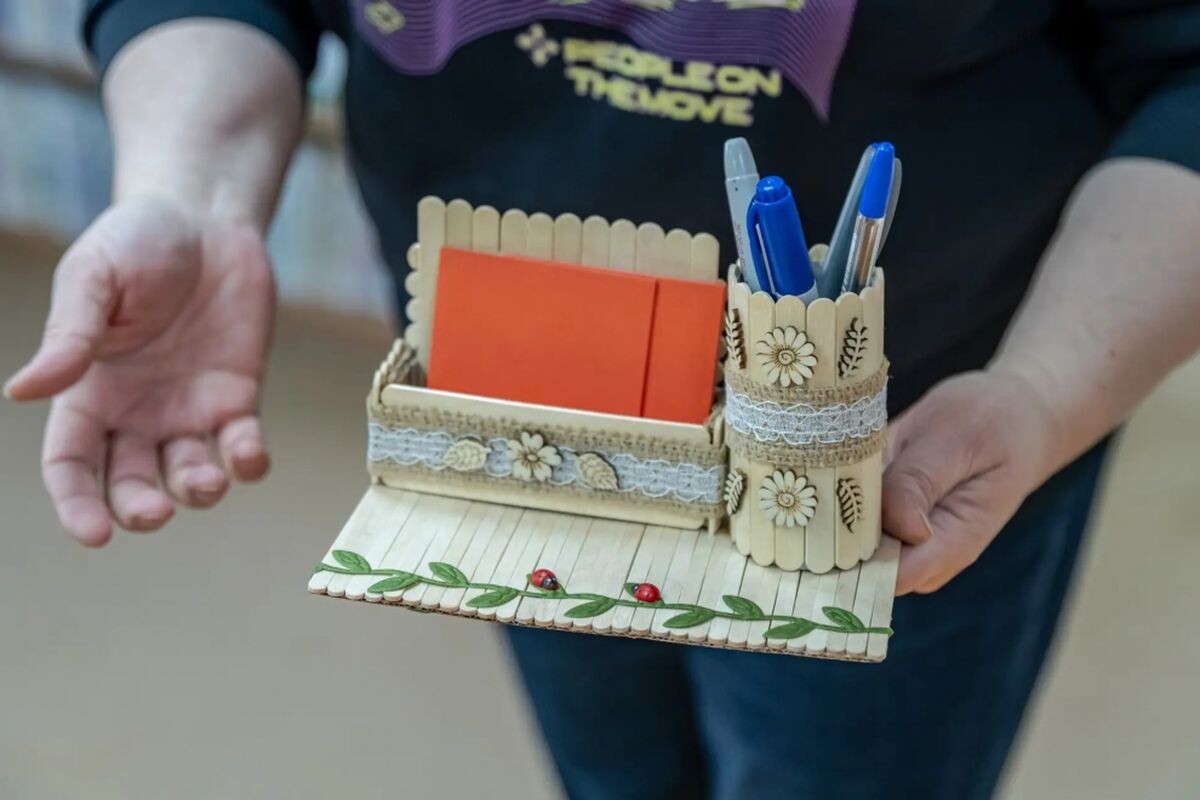 Сегодня проект «Северное долголетие» в очередной раз подарил участникам возможность проявить фантазию и провести время в дружеской атмосфере. В клубе «Сопки. БЕЗ ГРАНИЦ» в детской библиотеке № 2 Мурманска на ул. Адмирала Флота Лобова, 46, состоялся мастер‑класс «Поделка из деревянных палочек». Участники мастер-класса узнали, что обычные палочки от эскимо могут стать основой для оригинальных и полезных изделий. Они своими руками создали необычные подставки для телефона. Мурманчанам старшего поколения творчество помогает сохранять активность, осваивать новые умения и расширять круг общения.