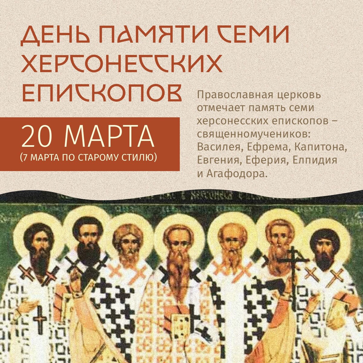 20 марта – день памяти священномучеников, в Херсонесе епископствовавших