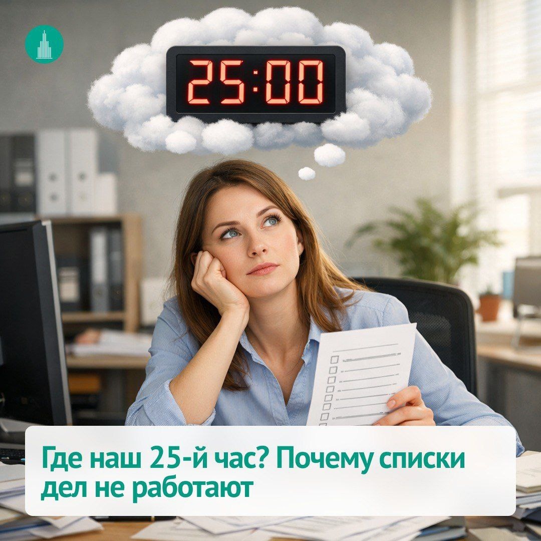 ? Почему списки дел не работают? Списки задач пишут почти все. Блокнот, заметки в телефоне, планер на неделю. Но вечером часто остаётся ощущение: дел было много - результата мало. Почему так происходит? 1. Список фиксирует задачи, но не управляет временем/ Когда в списке 15–20 пунктов, мозг видит не план, а перегрузку. Мы начинаем выбирать самое простое — отвечаем на сообщения, проверяем почту, закрываем мелочи. День проходит в делах, но важные задачи остаются. 2. Все задачи выглядят одинаково В списке рядом стоят: ✅«подготовить отчёт»; ✅«созвониться с клиентом»; ✅«разобрать почту». Но их ценность для результата — разная. Без приоритета день превращается в череду случайных действий. 3. План не учитывает реальную нагрузку В список легко добавить десять задач. Но на каждую из них нужны время и энергия. Когда план превышает возможности дня, появляется ощущение бесконечной гонки. Именно поэтому многие ищут свой «25-й час». На практике он не появляется. Меняется другое — подход к управ