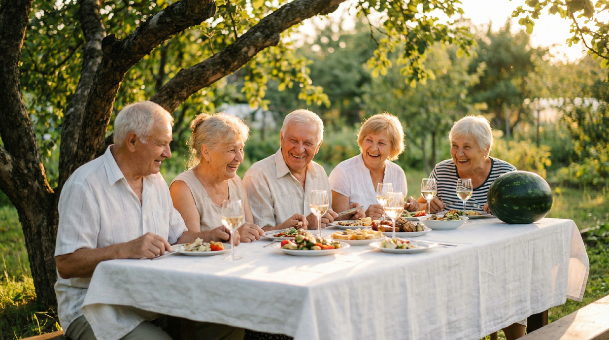 Разговор за столом шёл, как течёт летняя река – медленно, без особой цели, то расширяясь, то сужаясь, заходя в тихие заводи воспоминаний и снова выплёскиваясь на простор.