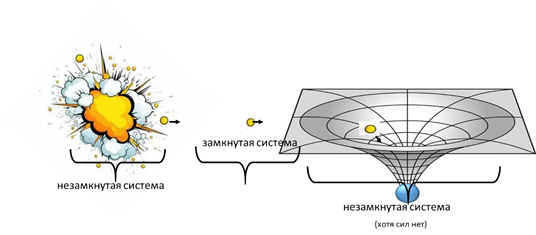 Мы сейчас выведем закон сохранения энергии. Первое, что нам понадобится – это разобраться с силами. «совокупность материальных точек и тел, рассматриваемых как единое целое, называют механической системой. Силы взаимодействия между материальными точками механической системы называются внутренними. И рассмотрим замкнутую систему, на которую не действуют внешние силы. В этой системе, пусть у нас есть две материальные точки с массами m1 и m2, движущиеся со скоростями v1 и v2, соответственно. (Два ли это тела, или две точки одного тела догадывайтесь сами). То есть, имеющие какой-то импульс, и поскольку внешние силы на них не действуют, то скорость свою они менять не собираются, вроде бы. Пусть F1' и F2' – равнодействующие внутренних консервативных сил, действующих на каждую из точек, а F1 и F2 – равнодействующие внешние силы. Другими словами, в замкнутой системе найдем, таки, силы (помните, что это масса на ускорение), включая внешние силы. Теперь приплетем второй закон Ньютона (с силами F