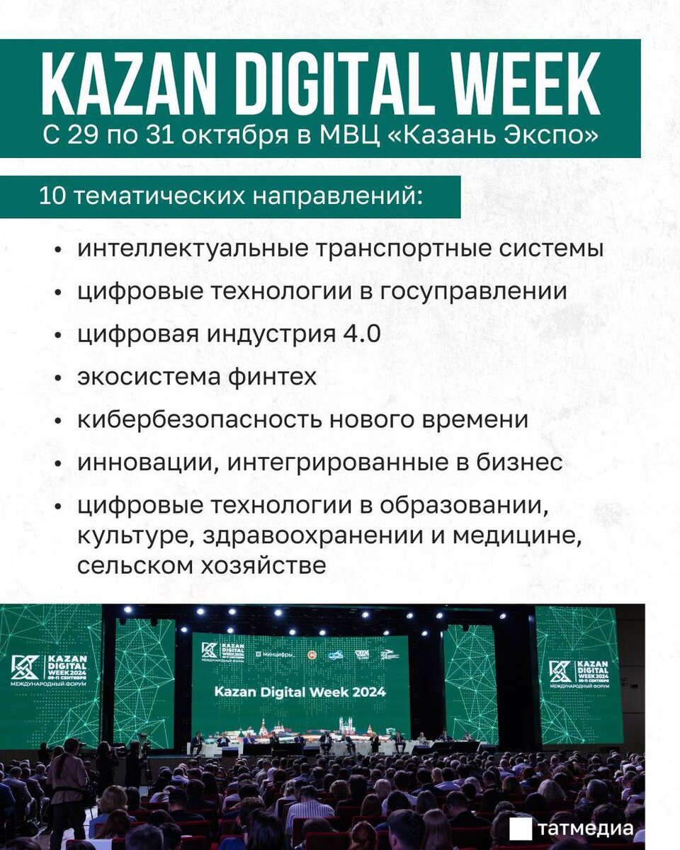 👾🤖 Форум Kazan Digital Week в этом году представит 10 тематических направлений Миссия Kazan Digital Week – создать площадку для обмена научно-технической информацией и объединения научных и технологических ресурсов. Какие тематики будут показаны - в карточке. Выиграйте iPhone | Татмедиа в MAX