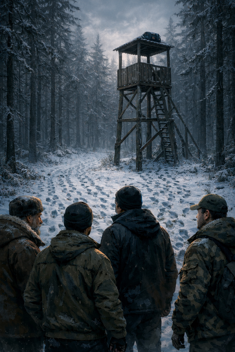Мы стояли возле избушки и молча смотрели на следы. Две цепочки. Рядом. Будто два человека ходили вокруг дома почти всю ночь. Петрович первым нарушил тишину. — Ну и что будем делать? Данила сразу ответил: — Да ничего. Пускай гуляют. Он попытался усмехнуться, но вышло плохо. Андрей тем временем медленно прошёл вдоль следов. Он смотрел на них внимательно, как охотник. Потом остановился. — Они ушли в лес. Игорь кивнул. — Видно. Следы действительно уходили в сторону густых сосен. Туда, где лес становился темнее и плотнее. Я сказал: — Может, не стоит туда лезть? Андрей посмотрел на меня. — Стоит. — Почему? Он спокойно ответил: — Потому что если они знают, где мы живём… лучше понять, кто они. Петрович вздохнул. — Логично. Данила недовольно буркнул: — Да ну вас. Но через пять минут мы уже шли по следам. Тайга утром выглядела иначе. Серое небо. Снег тихо поскрипывает под сапогами. Мороз щиплет нос. Следы было видно отлично. Две дорожки. Идут рядом. Иногда один след чуть впереди. Иногда второй.
