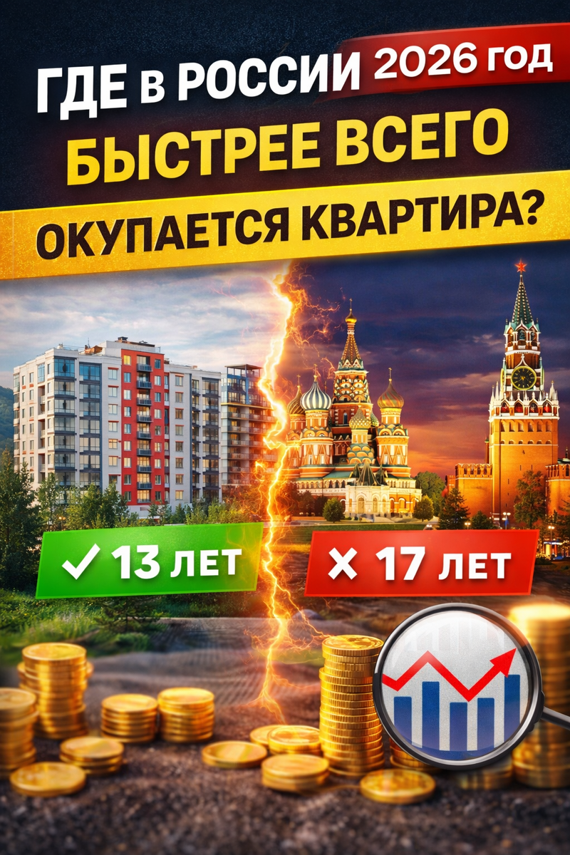 Недвижимость в России традиционно считается одним из самых надёжных способов сохранить капитал. Но если смотреть на цифры, срок окупаемости квартир в разных городах отличается очень сильно. В одном городе квартира может окупаться 13 лет, а в другом — почти 20 лет. Разберёмся, где в России недвижимость окупается быстрее всего в 2026 году и почему. По оценкам аналитиков рынка недвижимости, средняя доходность долгосрочной аренды в России сегодня составляет примерно 5–7% годовых. Это означает, что квартира в среднем окупается за 14–17 лет. Но всё зависит от двух ключевых факторов: Если цена недвижимости растёт быстрее аренды, срок окупаемости увеличивается. Один из самых доступных рынков недвижимости среди крупных городов. Средние показатели: Окупаемость — примерно 13–14 лет. Главное преимущество — низкая цена входа. Уфа считается одним из наиболее стабильных региональных рынков. Средние показатели: Срок окупаемости — около 14 лет. Город активно развивается, что поддерживает спрос на аренд