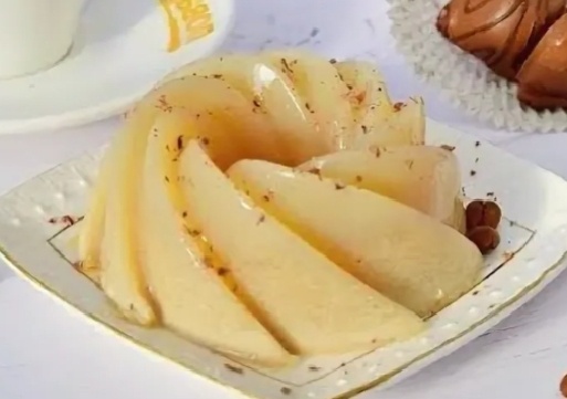 3. Остудите сироп и полейте им готовое застывшее бланманже перед подачей, посыпав целыми зернами граната .