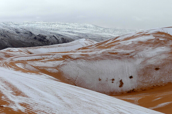 В пустыне Сахара 11 марта выпал снег. Об этом сообщило издание Daily Mail. На кадрах, которые были сделаны на северной окраине Сахары, в городе Айн-Сефра в Алжире, можно заметить, что дюны в пустыне внезапно стали белыми вместо оранжевых. По информации источника издания, накануне температура в городе, называющемся «вратами в пустыню», опустилась до минусовых отметок, что создало условия для снегопада. За последние 50 лет снег в Сахаре выпадает всего в седьмой раз, отмечают журналисты. Явление фиксировали также в 1979, 2016, 2018, 2021, 2022 и 2023 годах. Таким образом, в последнее десятилетие снегопады там участились. До этого снег впервые за десятилетия выпал в самой сухой пустыне Земли — Атакаме в северной части Чили. Климатолог Университета Сантьяго Рауль Кордеро заявлял, что пока рано напрямую связывать снегопад с изменением климата, но климатические модели показывают, что «осадки в пустыне Атакама, вероятно, будут происходить чаще». Ранее в Саудовской Аравии впервые за 30 лет выпа