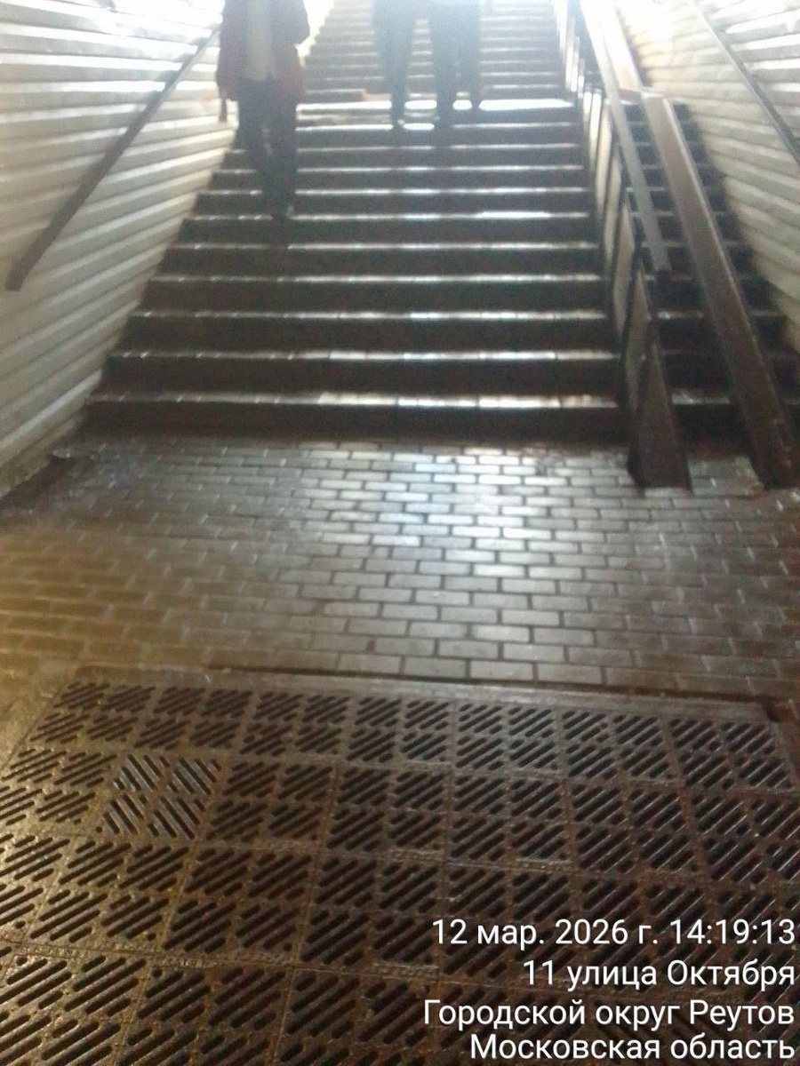 ‼️В администрации сообщили, что в переходе под МЦД-4 проведены работы по уборке. Видимо, имелось ввиду ликвидация потопа. Однако судя по фото, развалившиеся ступени, о которых также писали жители, так и не восстановили. «Мой Реутов» в MAX: https://max.ru/reutov_today
