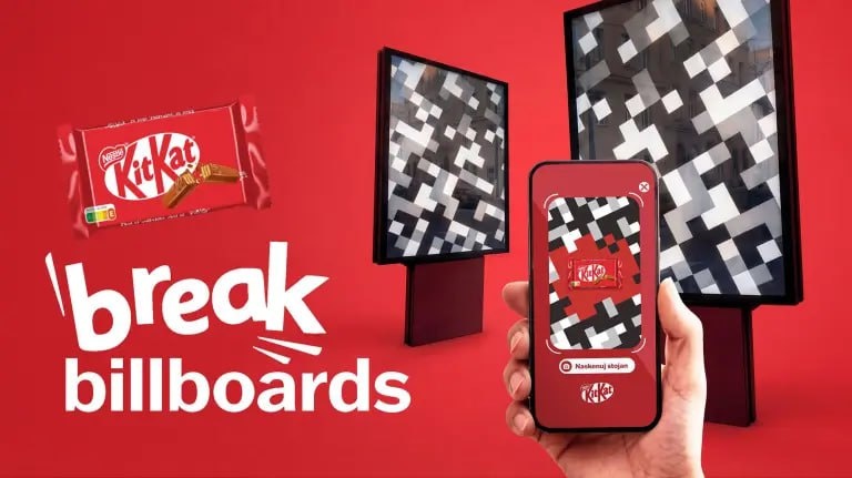 В Праге бренд превратил рекламные билборды, находящиеся «на паузе», в интерактивные носители, спрятав QR-коды внутри их пиксельного узора. Механика проста — внимательные прохожие, которые сканируют QR-коды на улице, могут выиграть один из 100 наборов KitKat. Для такой активации нужен только смартфон и немного интернета. #референс 😀 Пожалуй, лучший канал о маркетинге в Telegram / в MAX / в VK