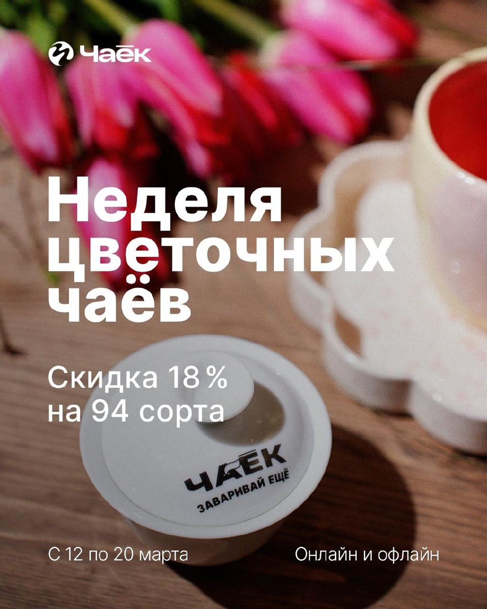 Очень хочется приблизить весеннее тепло, чтобы ловить улыбкой солнечные лучики и вдыхать глубже ароматы расцветающих бутонов! Пока цветы ещё готовятся к пробуждению после зимней спячки, мы озадачились поисками их ароматов вокруг. Нас ждал успех: яркая сирень обнаружилась в Те Гуань Ине, густые лилии — в Я Ши Сяне, а освежающий жасмин — в Шай Хуне. Всего мы нашли 94 различных сорта с цветочными нотками и флёром размашистых букетов. Скидка 18 % на все 👈 Акция действует с 12 по 20 марта в онлайне и офлайне. #акция@chaekshop