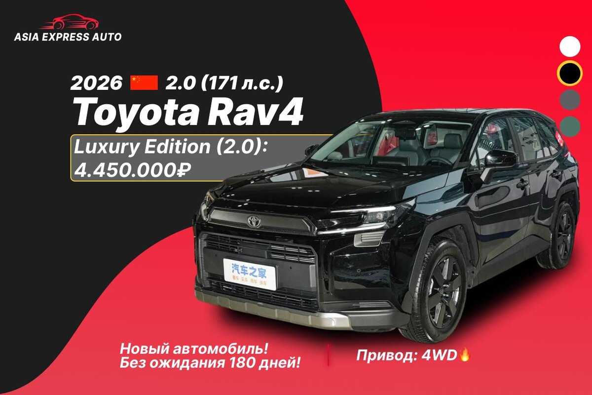 !🆕 🚀Быстрая доставка в РФ без ожидания!🚀 🔖Стоимость автомобиля рассчитана по курсу на сегодняшнее число до нашей стоянки в г. Благовещенск или Владивосток, с полным пакетом документов для постановки на учет! 🔖 Отправка в любой город! TOYOTA RAV4 новый! ▫️Год: 2026 ▫️Двигатель: 2.0 (171 л.с.) ▫️Привод: 4WD🔥 ▫️Новый автомобиль!💎 💰Стоимость под ключ в РФ: 🔹Luxury Edition (Нажмите на ссылку, чтобы увидеть комплектацию полностью): 4.450.000₽ 💸По курсу юаня 12 Стоимость может измениться из-за цвета! Если вас интересуют другие автомобили, напишите в комментариях — наши менеджеры с удовольствием рассчитают цену под ключ в РФ. ✍️ 🔴Смотреть адреса офисов 🔴Владимир Благовещенск 🔴Иван Екатеринбург #Китай #Новый