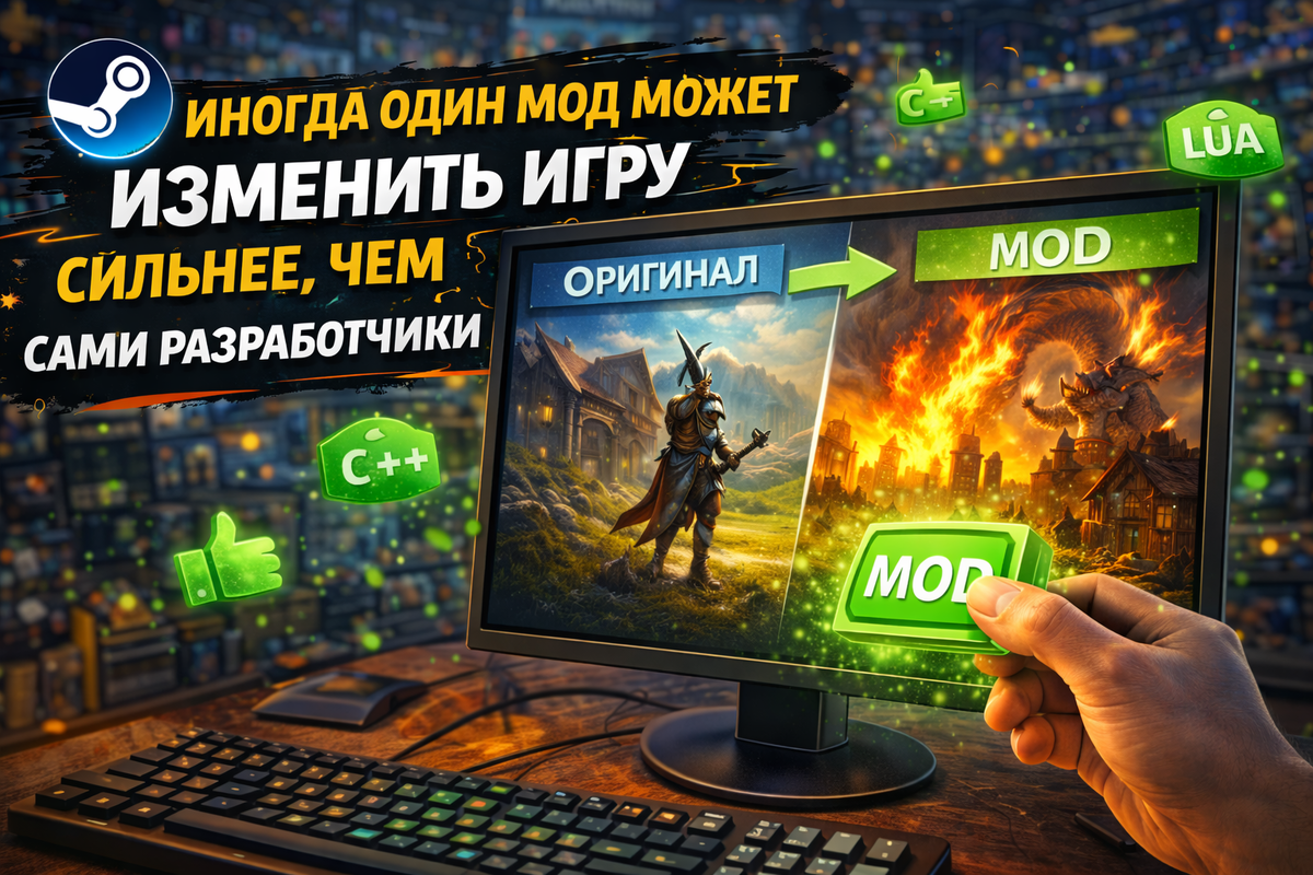 Иногда одна небольшая модификация способна изменить игру сильнее, чем официальное обновление от разработчиков. В истории видеоигр существует множество примеров, когда моды не просто улучшали проект, а фактически превращали его в совершенно новую игру. Сегодня моды стали важной частью игровой индустрии. Они продлевают жизнь старым проектам, добавляют новый контент и позволяют игрокам создавать собственные версии любимых игр. Но как так получилось, что обычные фанатские модификации могут настолько сильно влиять на игры? Моды — это изменения, которые игроки вносят в игру. Иногда это небольшие правки вроде новых текстур или моделей персонажей, а иногда — полноценные дополнения с новыми механиками и сюжетами. Первые моды появились ещё в 90-е годы, когда разработчики начали выпускать инструменты для редактирования игровых файлов. Игроки получили возможность менять уровни, создавать карты и экспериментировать с игровыми механиками. Со временем это превратилось в огромную творческую культуру.